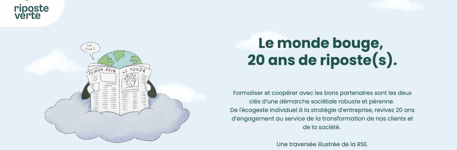 En février 2006, l'association Riposte Verte est créée. En février 2026, devenue coopérative, elle fête ses 20 ans et revisite l'histoire de la RSE depuis sa création avec une sélection d'évolutions clés et de réalisations marquantes.